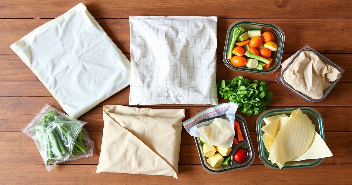 Les tissus en fibres naturelles (coton, lin, chanvre) permettent aux aliments de « respirer » et évitent la condensation, particulièrement bénéfique pour les légumes-feuilles et les herbes.